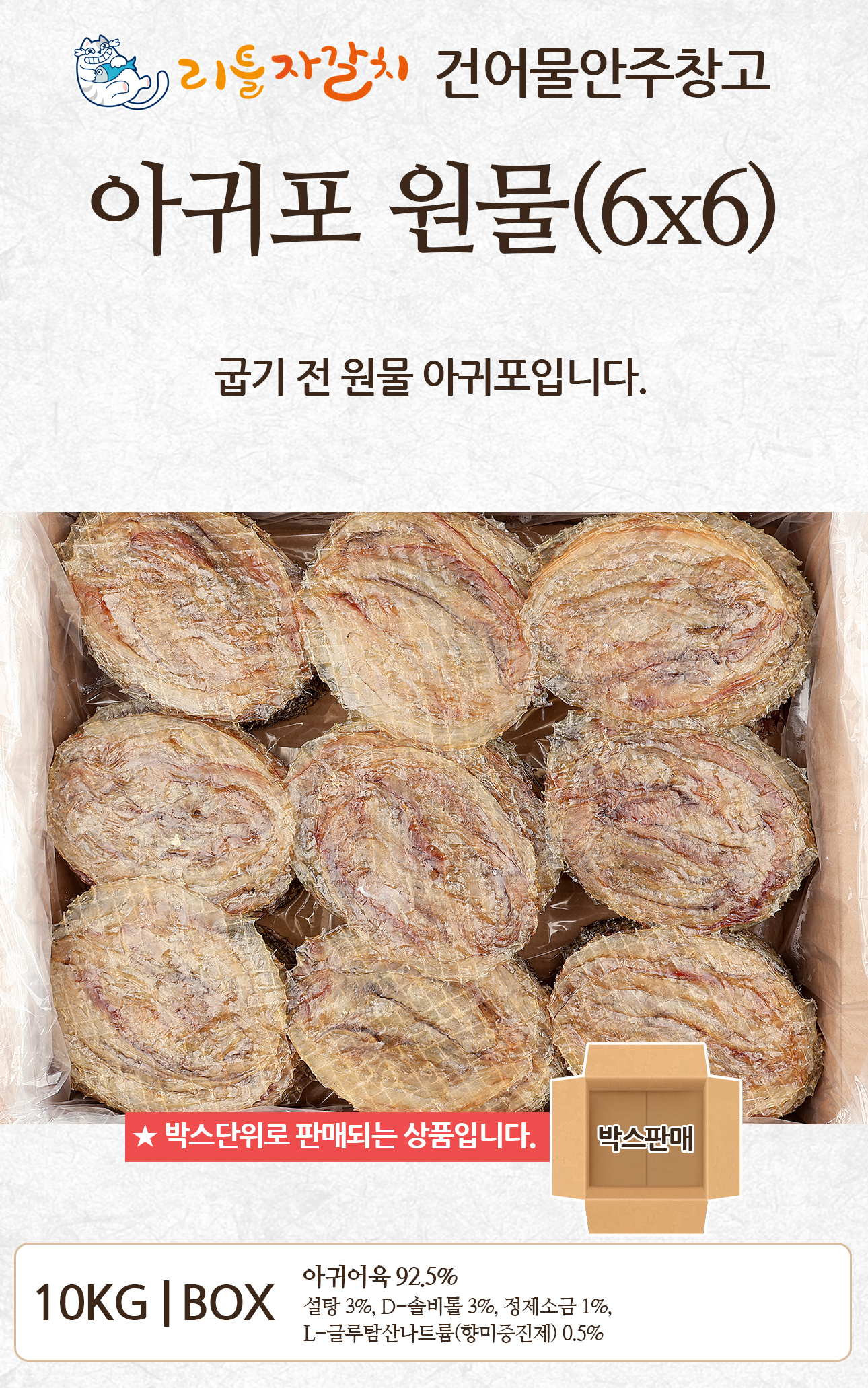 아귀어육 92.5%, 설탕 3%, D-솔비톨 3%, 정제소금 1%, L-글루탐산나트륨(향미증진제) 0.5%