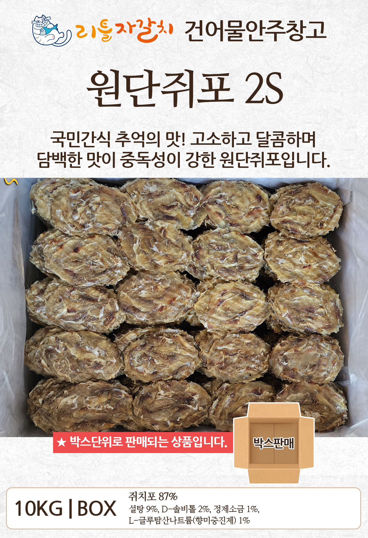 쥐치포 87%, 설탕 9%, D-솔비톨 2%, 정제소금 1%, L-글루탐산나트륨(향미증진제) 1%