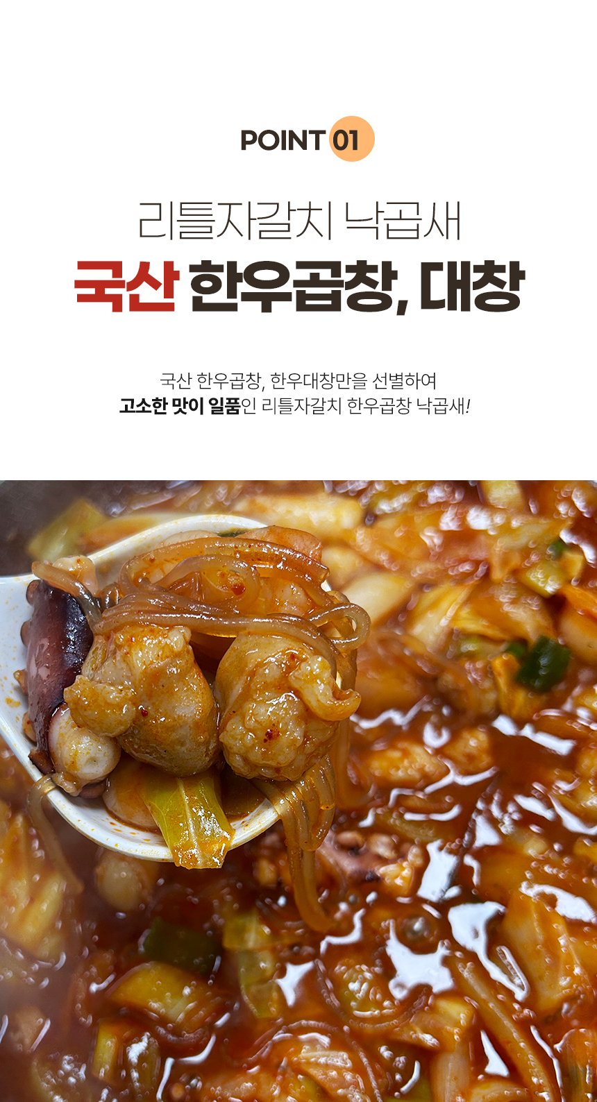 국산 한우곱창, 한우대창을 사용하여 고소한 맛이 일품입니다.