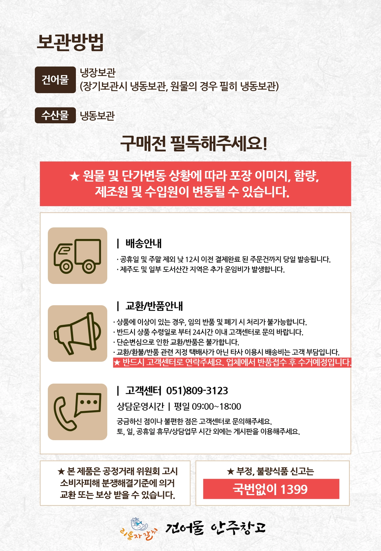 - 보관방법 : 직사광선과 고온다습한 곳을 피하고 서늘한 곳에 보관